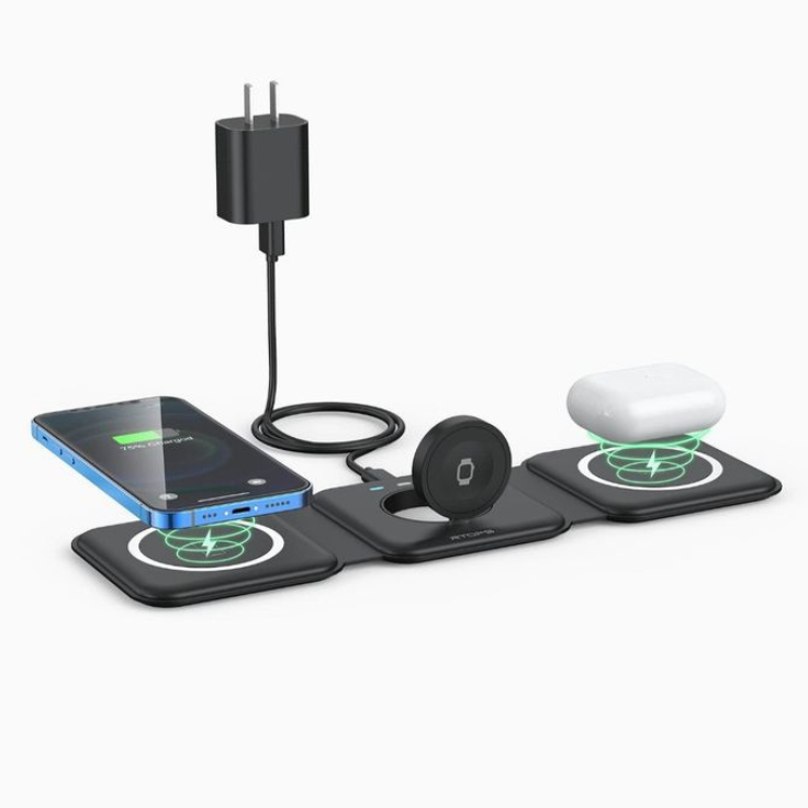 - Puede cargar un teléfono, un reloj y auriculares al mismo tiempo